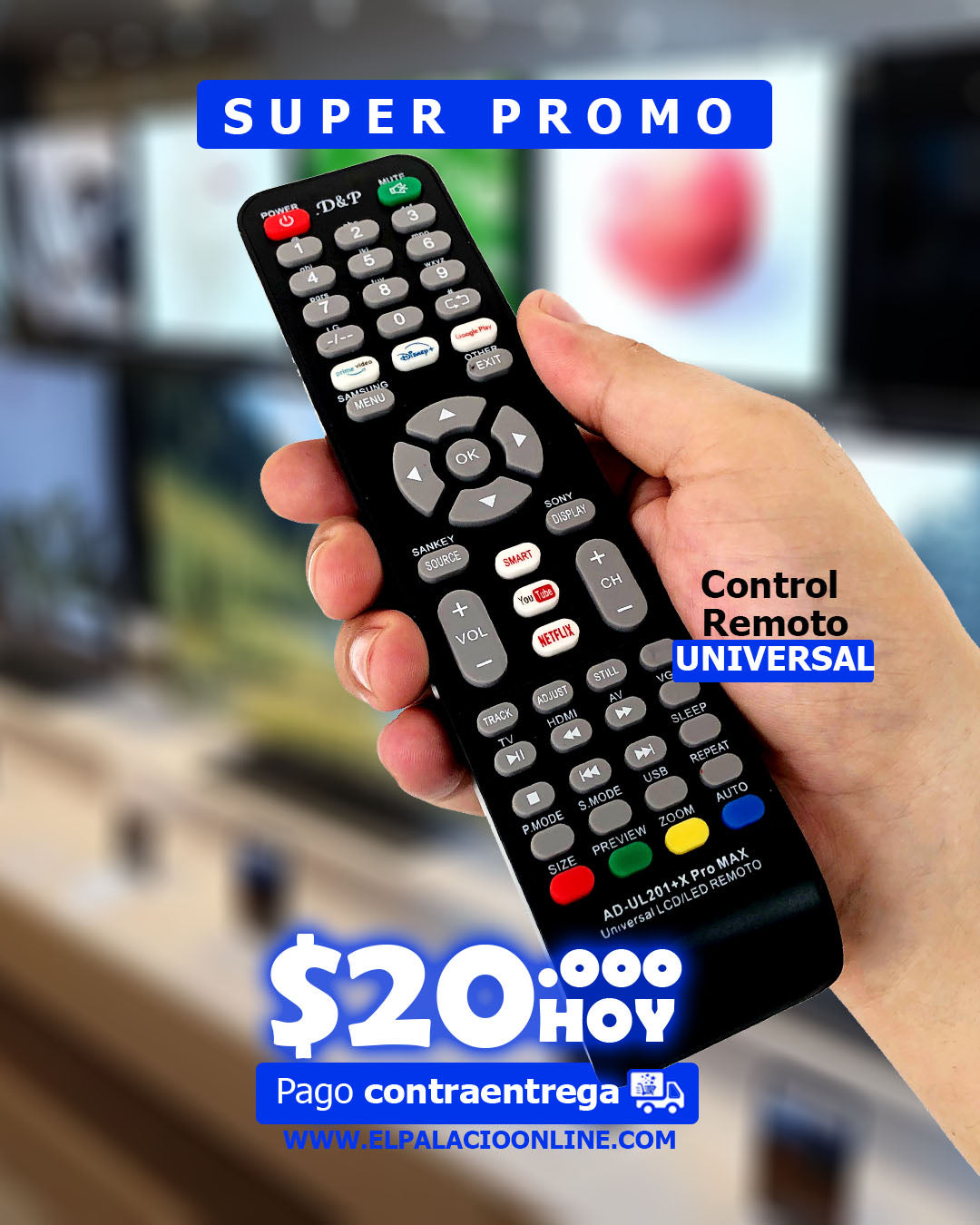 El AD-UL201+ Pro Max es un control remoto universal de alta compatibilidad, ideal para reemplazar controles perdidos o dañados. Funciona con la mayoría de televisores LED, LCD y Smart TV de marcas reconocidas. No requiere programación: solo inserta las pilas ¡y úsalo de inmediato!